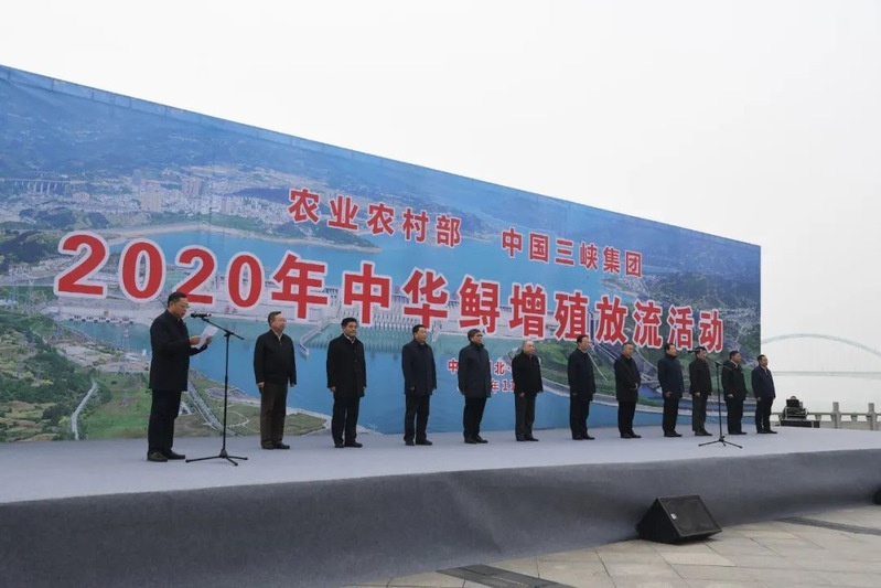 11月28日,农业农村部与中国长江三峡集团有限公司在湖北宜昌联合开展中华鲟增殖放流活动,共放流大规格子二代中华鲟150尾。农业农村部部长韩长赋、三峡集团董事长雷鸣山出席活动。