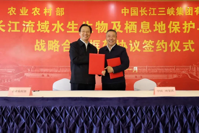 (图:农业农村部与三峡集团公司签订《长江流域水生生物及栖息地保护与修复战略合作框架协议》)
